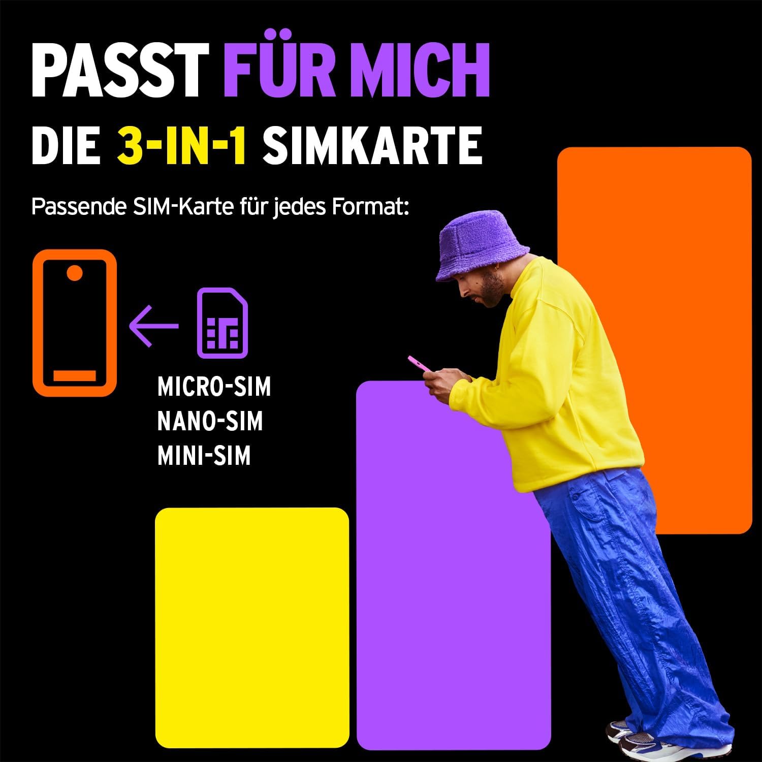 • 3-IN-1 SIM-KARTE: Mini-SIM, Micro-SIM & Nano-SIM: deine congstar Prepaid SIM-Karte enthält drei Formate und passt damit in jedes Smartphone und Device.