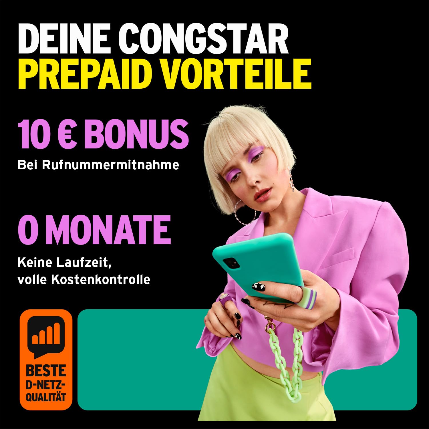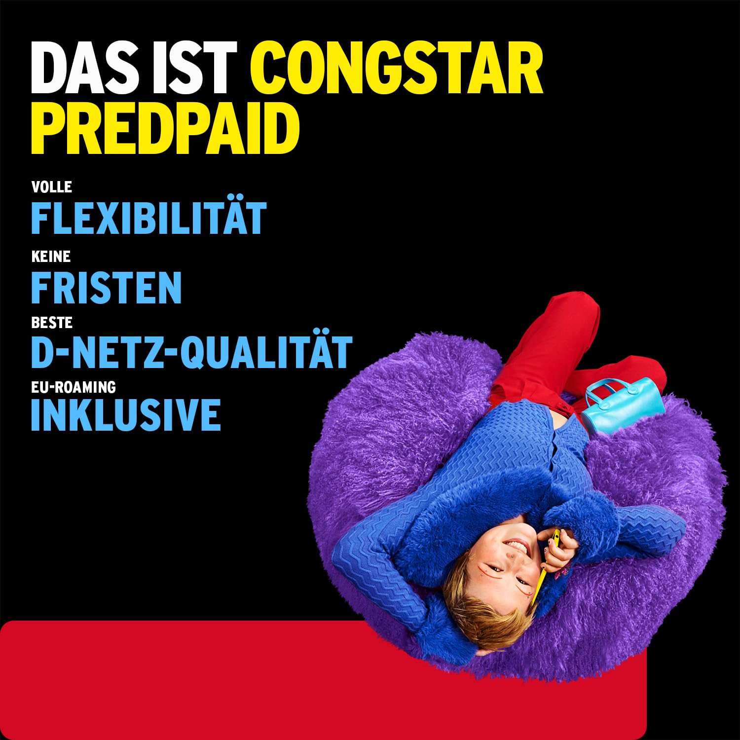 congstar Prepaid Allnet S SIM-Karte ohne Vertrag I Prepaid-Paket in D-Netz Qualität für Einsteiger I 3 GB LTE mit 25 Mbit/s I Telefonie & SMS Flat in alle dt. Netze I EU-Roaming inkl.